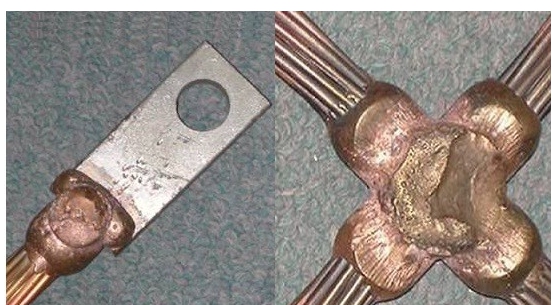 所有的連接均采用搭接焊。銅帶的搭接長度為銅帶寬度的兩倍,并應焊三個棱邊。