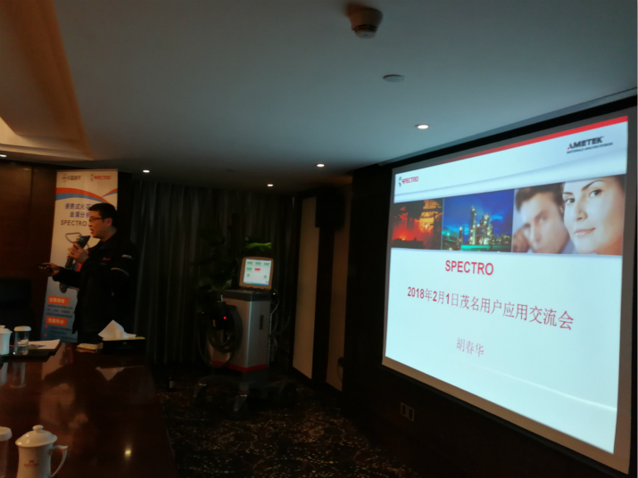 深圳華普通用科技有限公司攜手德國斯派克(SPECTRO)分析儀器公司于2018年02月01日在茂名國際大酒店聯合舉辦了“光譜儀應用技術交流會”。本次共有9家單位30多人參加了此次交流會。德國斯派克市場總監及產品經理著重介紹了公司的全系列產品及其應用,涵蓋了直讀光譜儀 SPECTROLABSPECTROMAXx, 便攜式/移動式光譜儀SPECTROTESTSPECTROPORT,等離子體光譜儀SPECTRO ARCOSSPECTROBLUEX熒光光譜儀SPECTRO MIDEXSPECTRO XEPOS以及手持式X熒光儀SPECTRO xSORT
